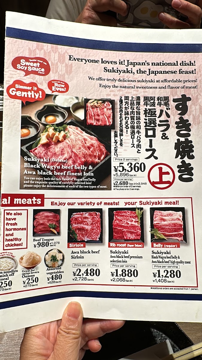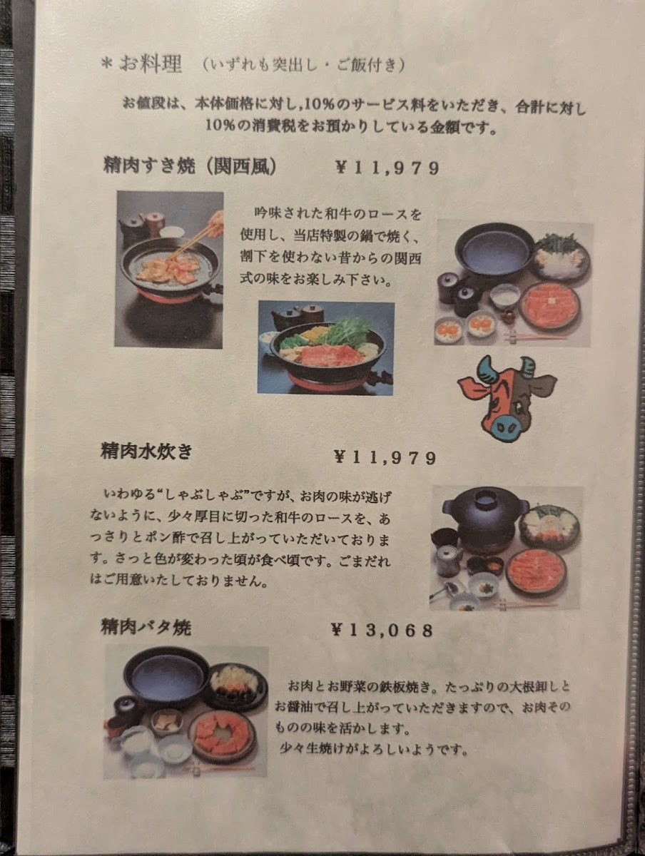 From a reviewer’s perspective, the menu at Meat Sukiyaki Restaurant Kitamura is refreshingly simple yet deeply rooted in Osaka’s culinary tradition, focusing on expertly prepared meat‑centric dishes that reflect the restaurant’s long history. The standout offering is undoubtedly the 精肉すき焼 (sukiyaki) - ¥9,900, a signature Kansai‑style beef dish featuring premium A5 wagyu simmered with vegetables and served tableside, allowing diners to savor each richly flavored bite. Alongside this, the menu traditionally includes 水炊き (mizutaki) - ¥9,900 and バタ焼 (batayaki) - ¥10,800, giving guests alternative ways to enjoy high‑quality meat and accompaniments in classic Japanese preparations. While minimalist in selection, these dishes highlight the restaurant’s commitment to quality ingredients and traditional techniques, making the menu a focused exploration of sukiyaki and related specialties at a premium price point.